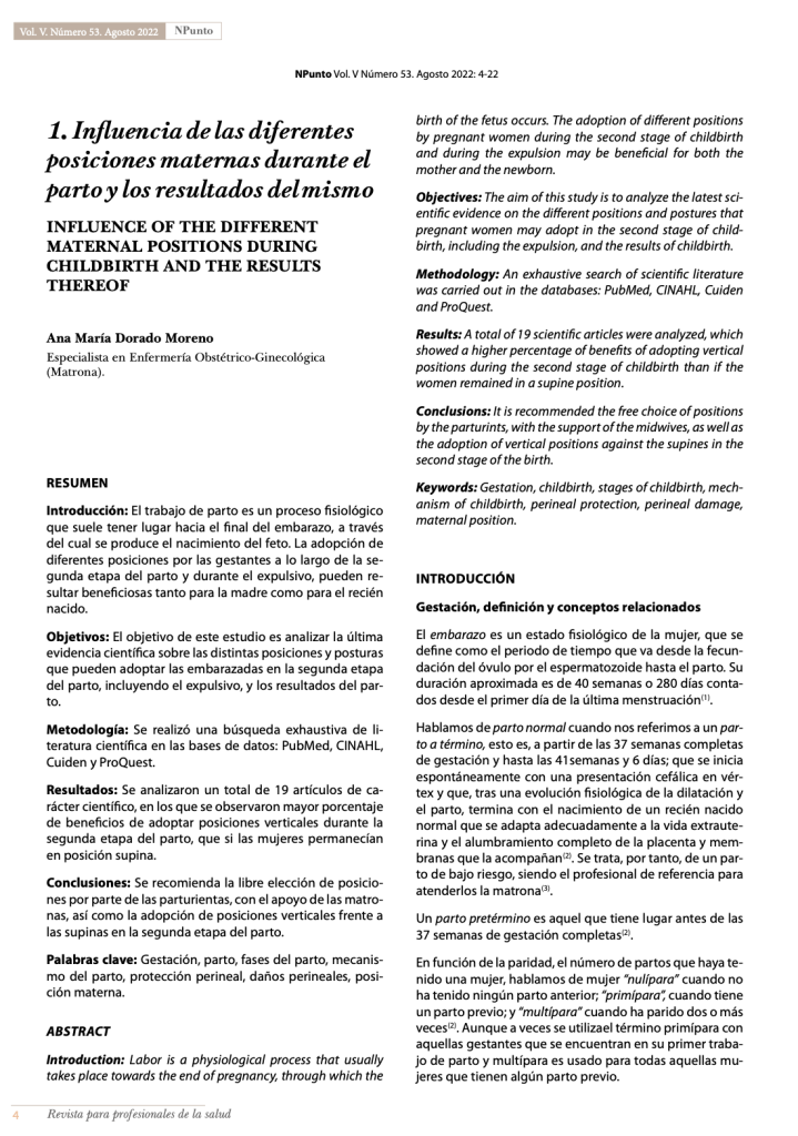 Influencia de las diferentes posiciones maternas durante el parto y los resultados del mismo: Revisión bibliográfica