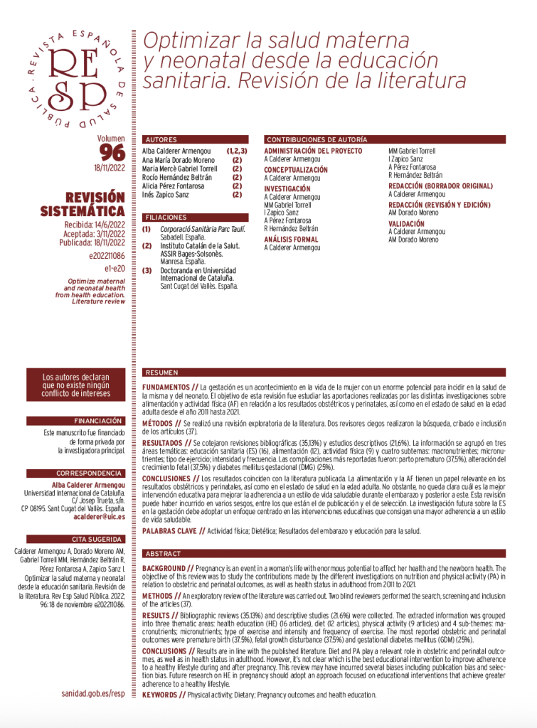 Optimizar la salud materna y neonatal desde la educación sanitaria. Revisión de literatura